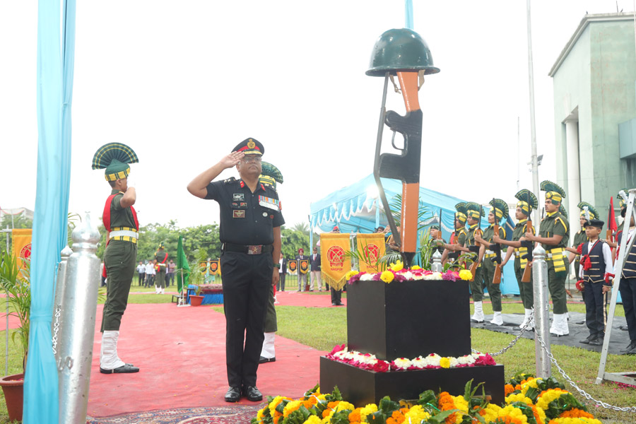 The Route March was followed by presentation of ‘Guard of Honour’ to the Chief Guest, laying of wreath at a make-shift 'War Memorial' and a commemorative function held at Divisional Sports Complex, Mankapur.