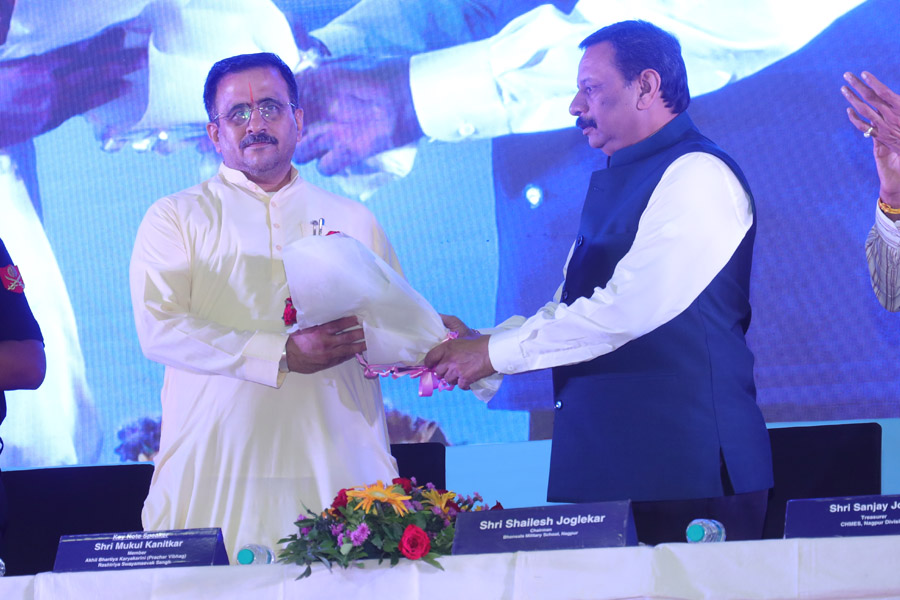 Bhonsala Military School & Bhonsala Sainik School, Nagpur celebrated the “26th Anniversary of Kargil Vijay Diwas” on Saturday, 26th July 2025 at Divisional Sports Complex Mankapur, Nagpur with traditional gusto and fervour. Brig Abhijeet Valimbe, Deputy General Officer Commanding, Uttar Maharashtra & Gujarat Sub Area, Nagpur was the Chief Guest for the programme. Shri Mukul Kanitkar, Member Akhil Bhartiya Karyakarini (Prachar Vibhag) of RSS was the Key Note Speaker.