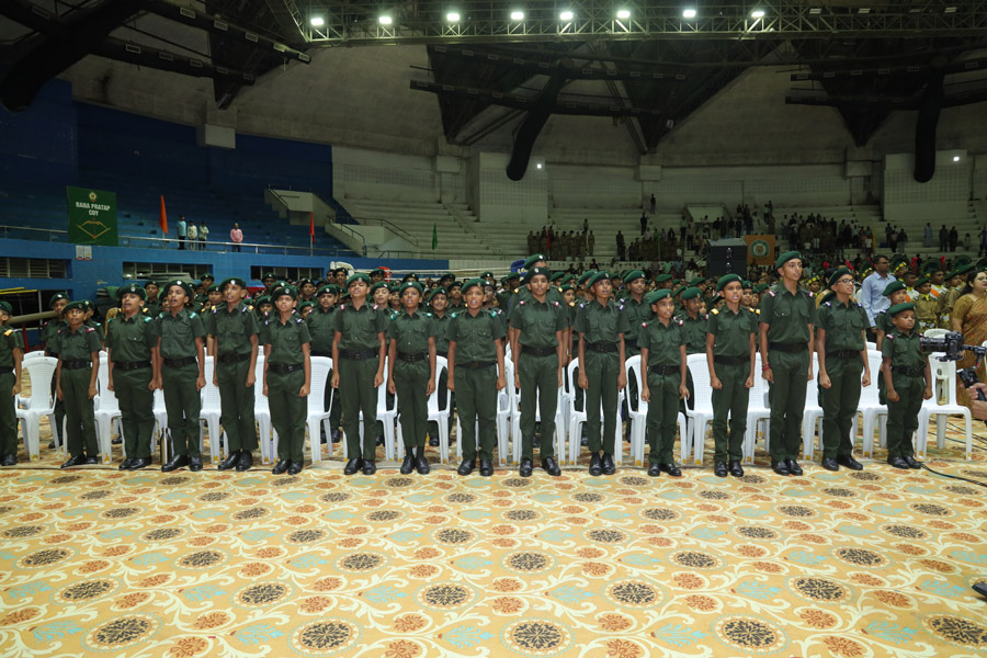 Office bearers of CHME Society Nagpur division Shri Suryaratan Daga, Chairman, Shri Shailesh Joglekar, Chairman, BMS Nagpur, Shri Rahul Dixit, Secretary and Shri Sanjay Joshi, Treasurer were present on the dias. Dr J S Riar, Principal, BSS, Nagpur proposed the vote of thanks and Mrs Asmita Deo conducted the proceedings. The function was attended by all the cadets, military and civil dignitaries, general public and a large number of parents. The programme culminated with reciting of National Anthem by all.