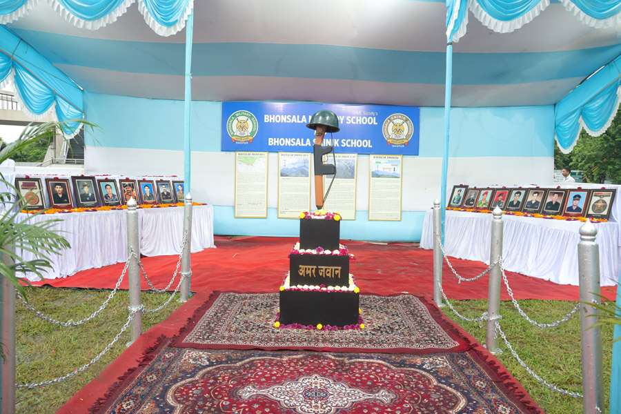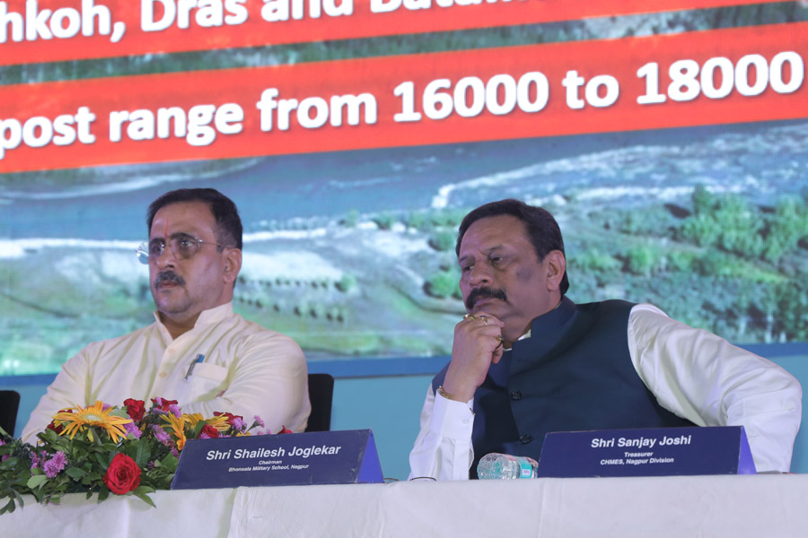 The programme inside the complex commenced with welcome address. Thereafter, the cadets presented the school song followed by glimpse of Kargil Vijay Diwas celebration by Bhonsala Military School over the years. Col Amarendra Hardas, Commandant threw light on various aspects of Kargil War through the Power Point Presentation.